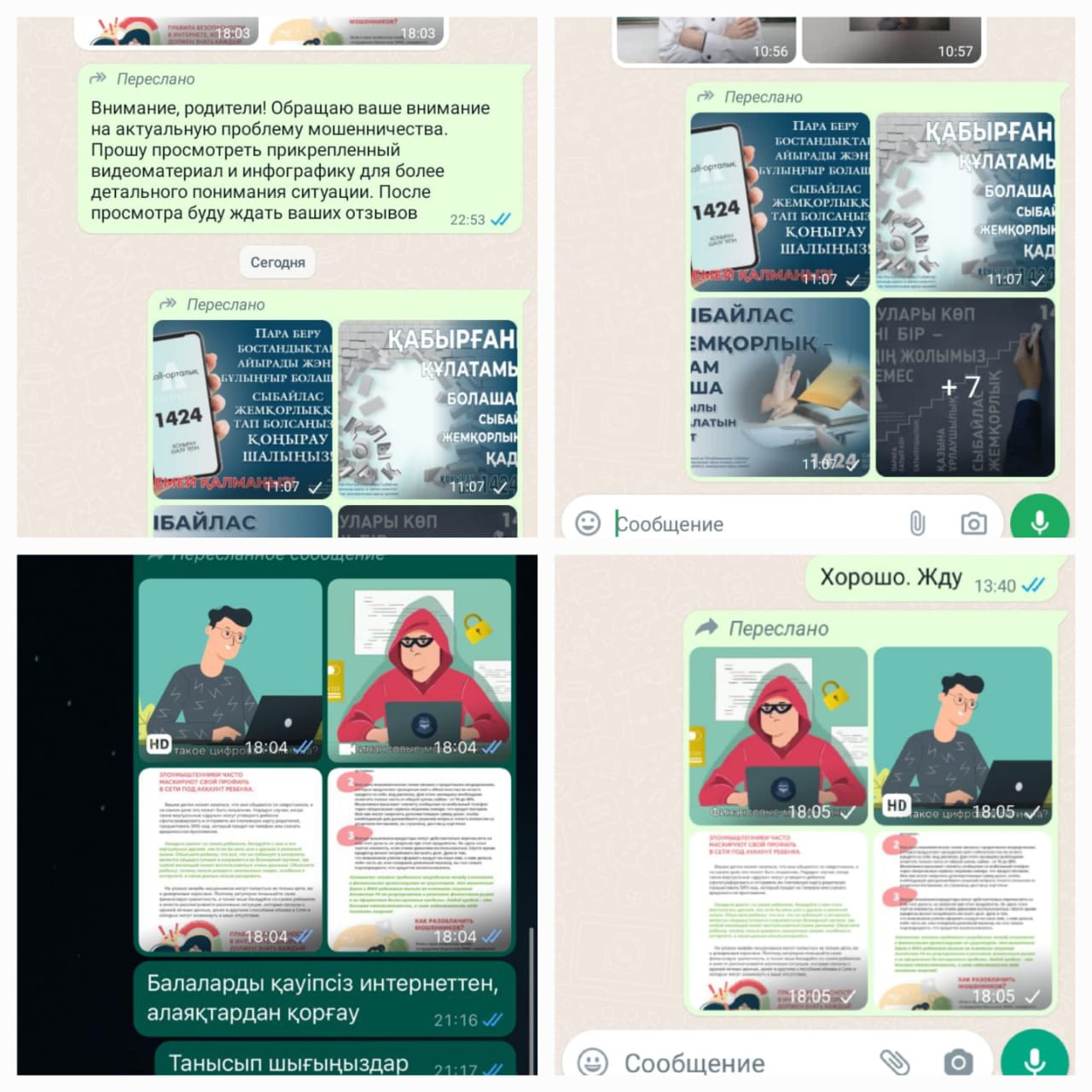 Сыбайлас жемқорлық фактілерін болдырмау, алаяқтықтың алдын алу бойынша ата-аналар чатына жадынамалар, инфографикалар таратылды.