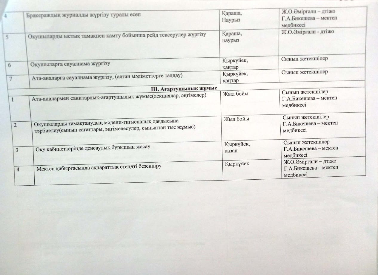 2021-2022 оқу жылына арналған жұмыс жоспары