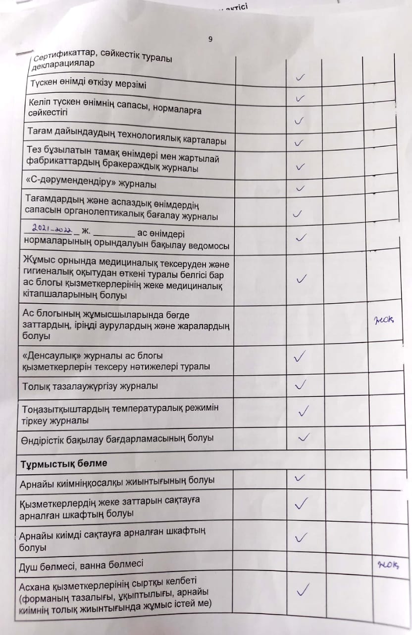 2022-2023 оқу жылы бойынша бракеражды комиссия актісі (қараша)