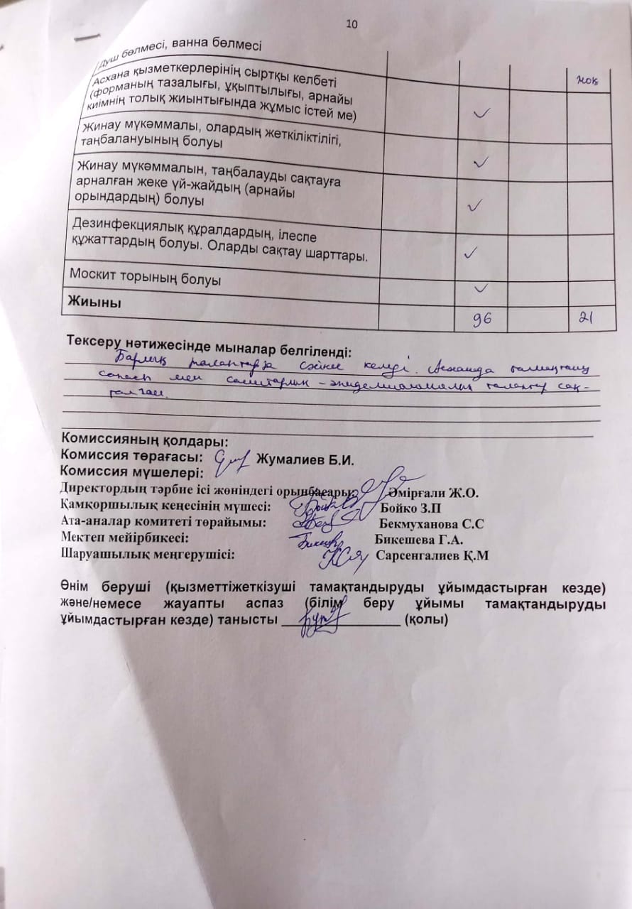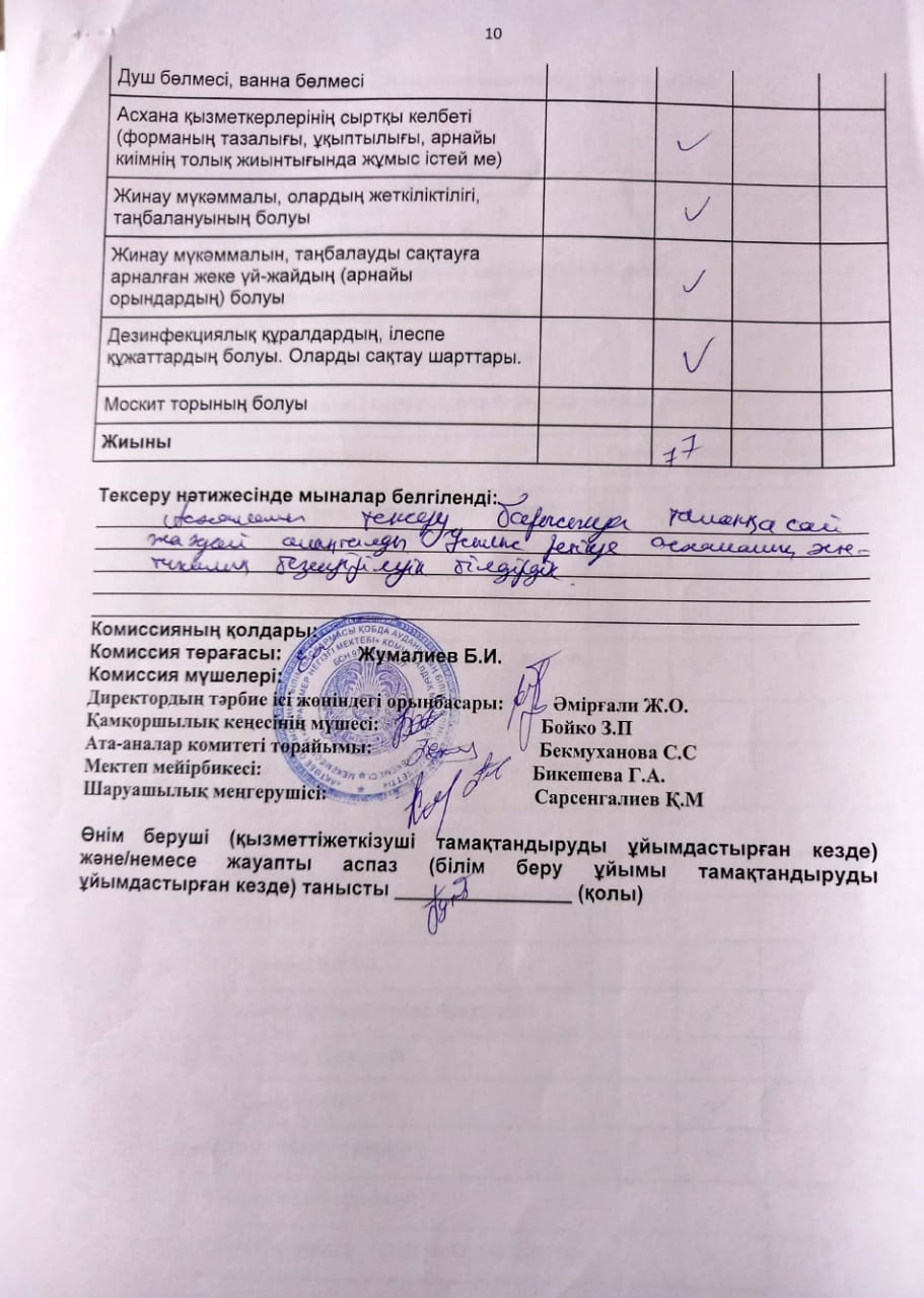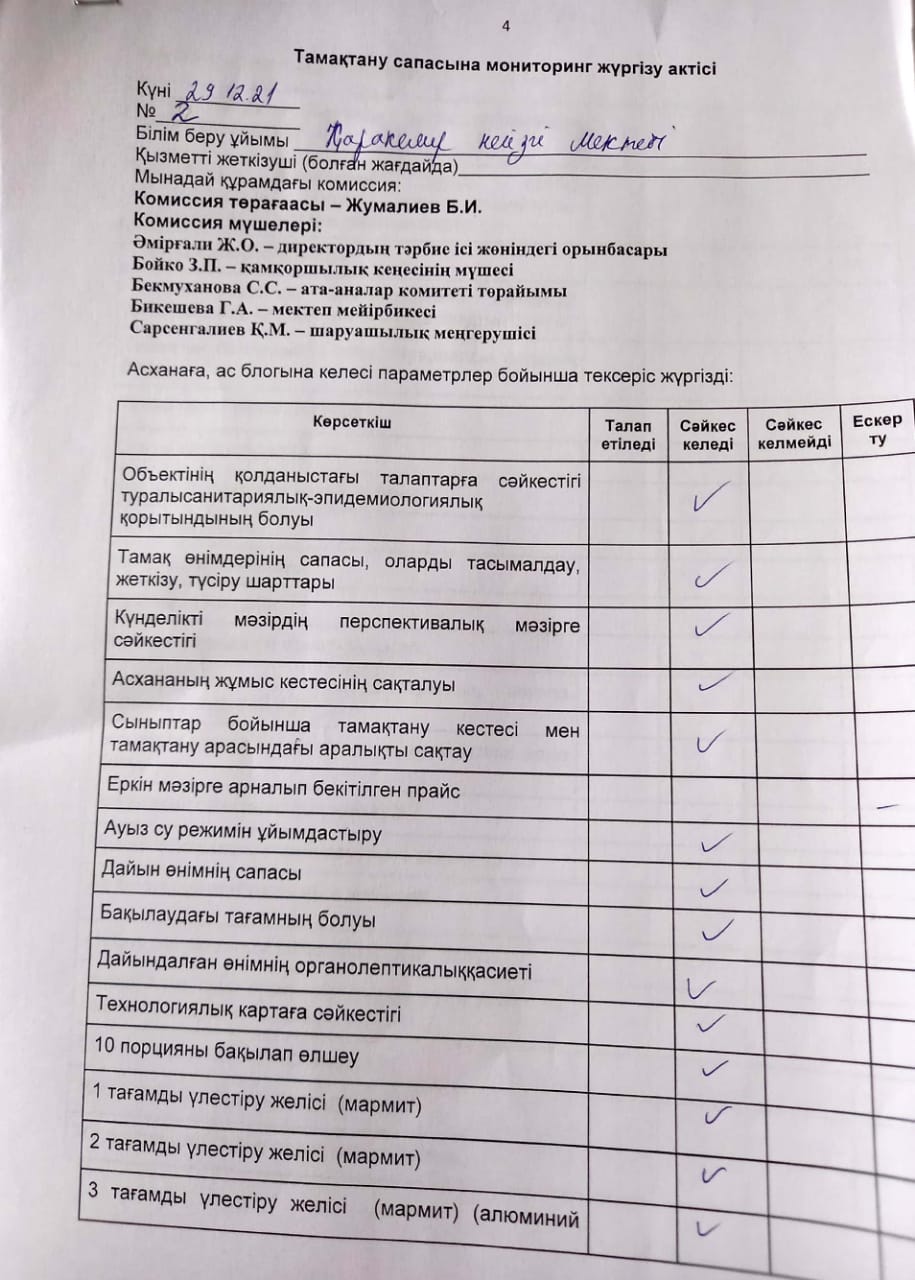 Қаракемер негізгі мектебінің ыстық тамақтандыру бойынша бракераждық комиссиясының